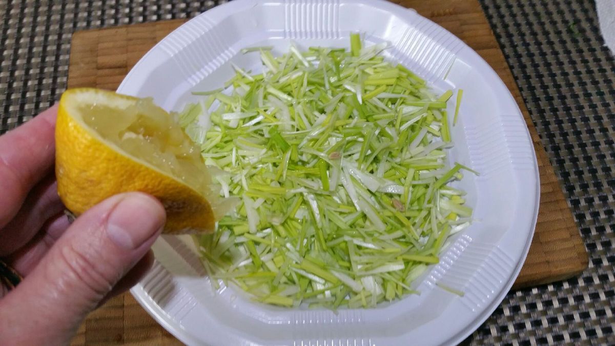 1 - Eplucher les gambas cuites, les découper en petits morceaux. Oter les tiges du bouquet de coriandre et ciseler. Emincer finement le blanc de poireau, citronner avec le jus d'un demi citron, rajouter une bonne cuil. à soupe de sauce soja et 2 à 3 pincées de graines de pavot. Réserver et laisser macérer.